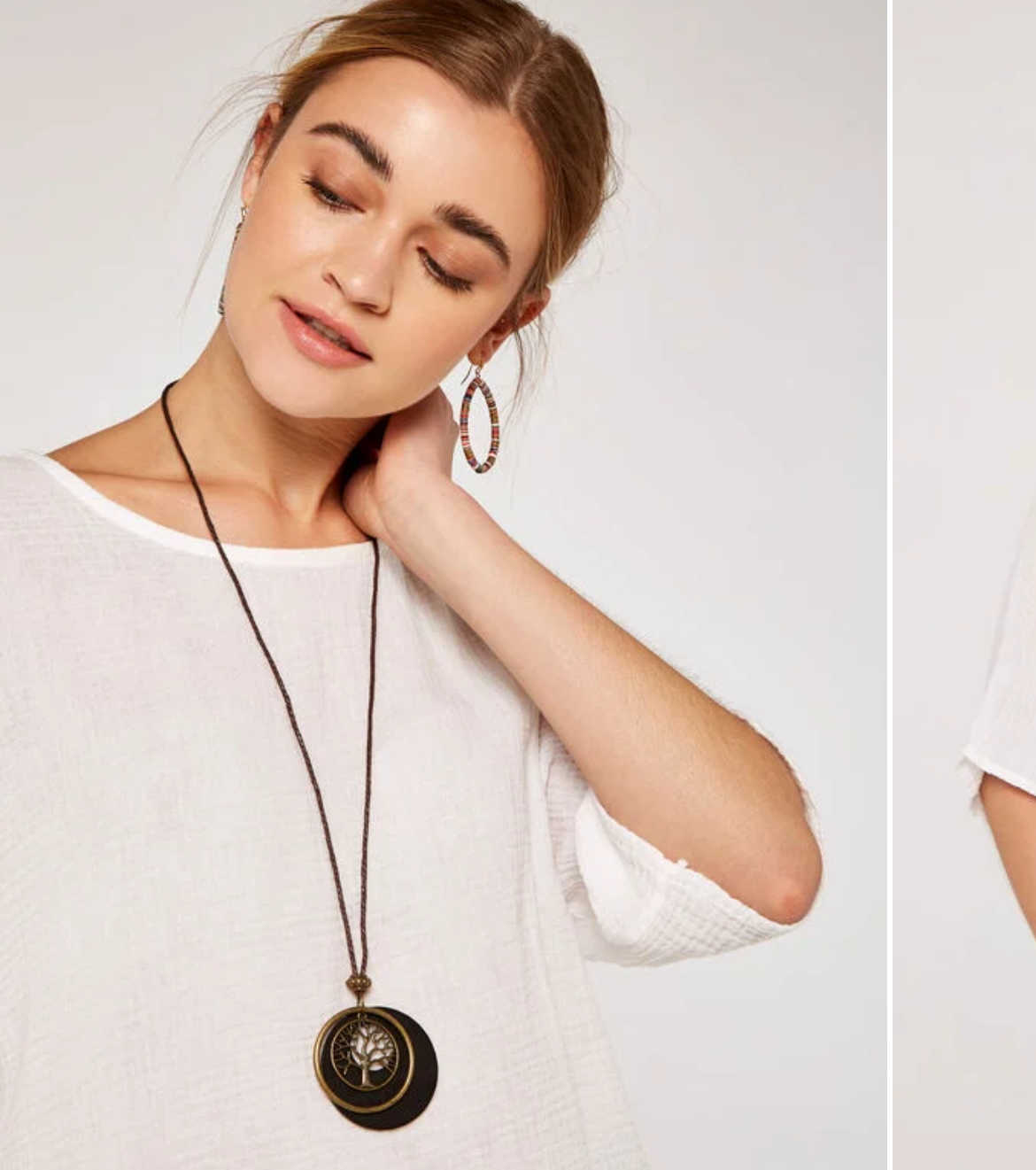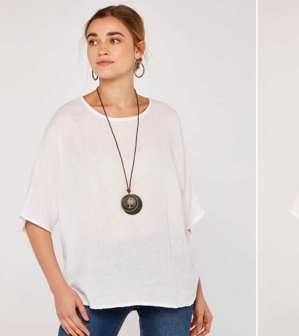 Crafted from pure cotton to a textured finish, this soft, oversized top features elbow-length batwing sleeves and a boat neckline. Perfect for everyday dressing, it comes complete with a detachable cord necklace that features a metal tree pendant. Style yours with denim shorts and leather cowboy boots to complete the look.